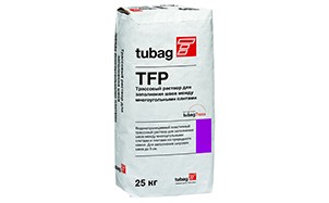 Водонепроницаемый, эластичный раствор для заполнения швов tubag TFP. Особенно предназначен для широких швов до 5 см, например при укладке многоугольных плит. Высокая адгезия с боковыми стенками плит. Преимущественно для пешеходной нагрузки. Пригоден для категории N1 согласно ZTV Wegebau.