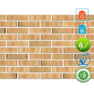 Уникальный матовый, песочно-серый цвет и рельефная лицевая поверхность. Производится из смеси красножгущейся глины и песка с торкретированием лицевой поверхности натуральными минеральными компонентами по технологии редукционного-flash обжига. Отличительной особенностью данного вида кирпича является рельефная фаска.