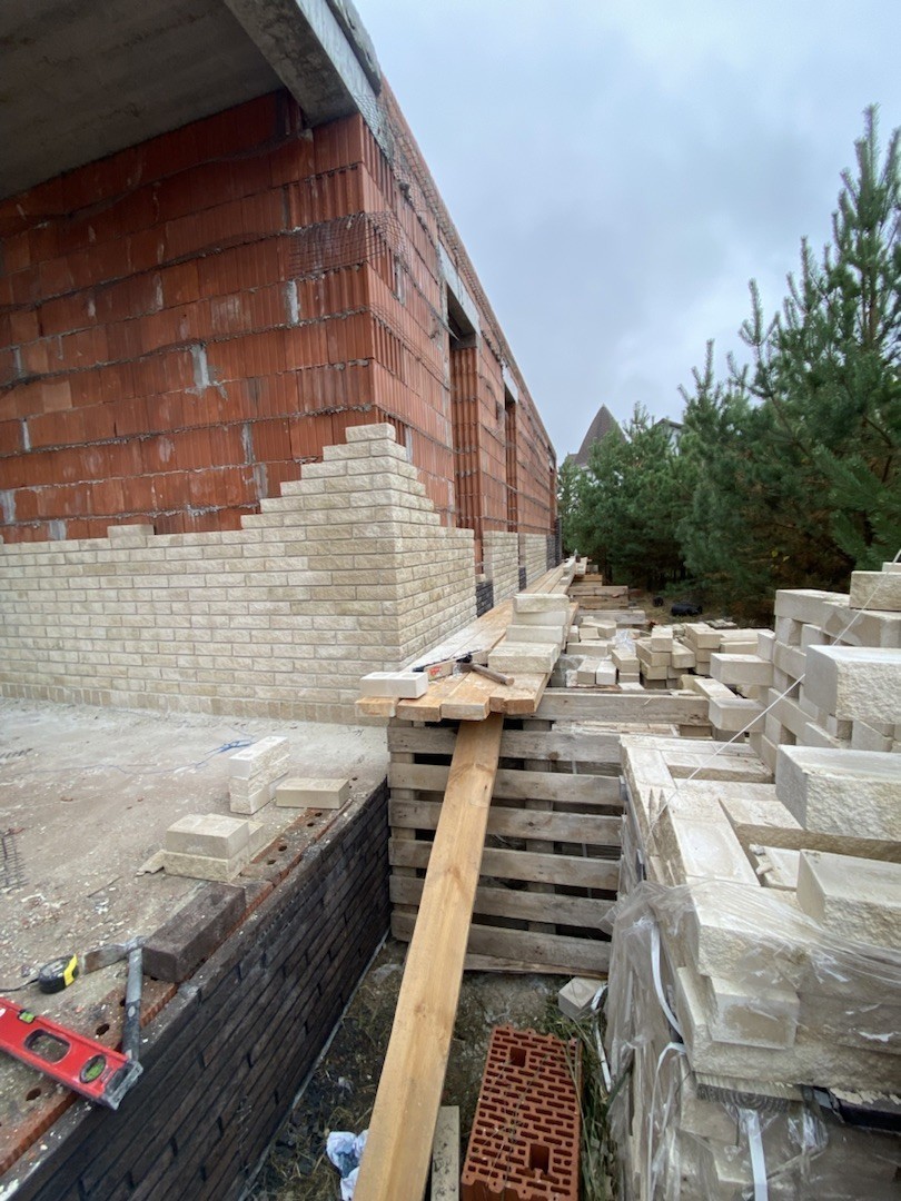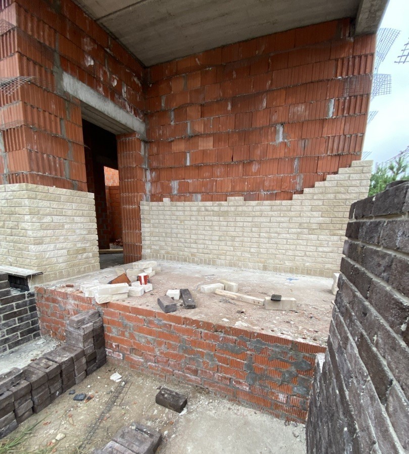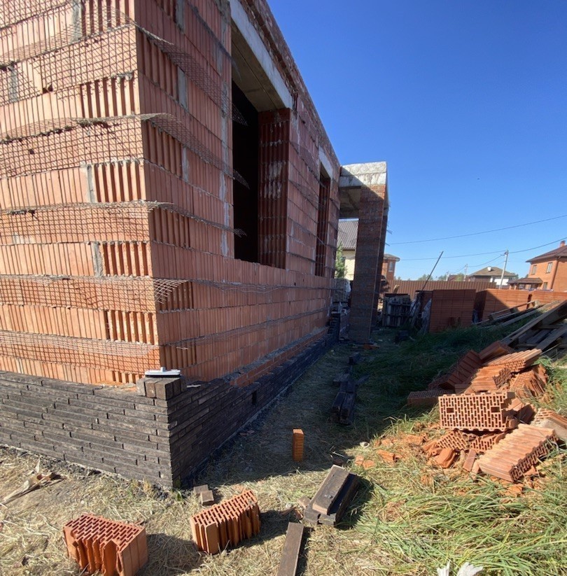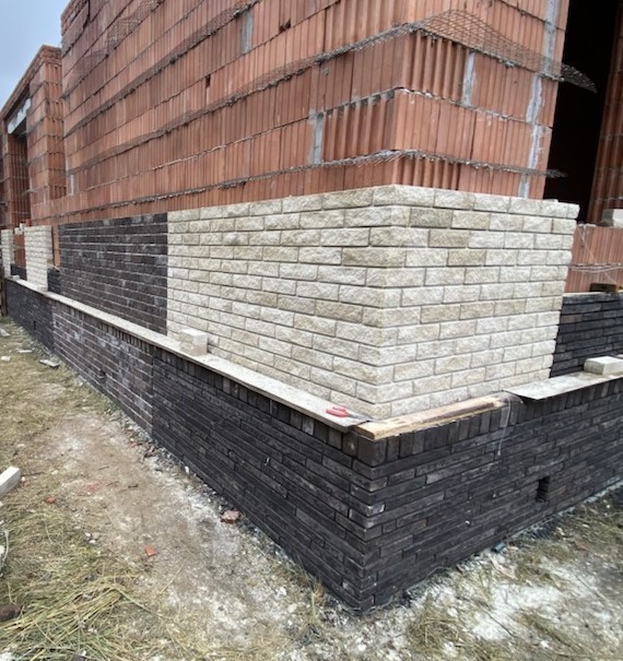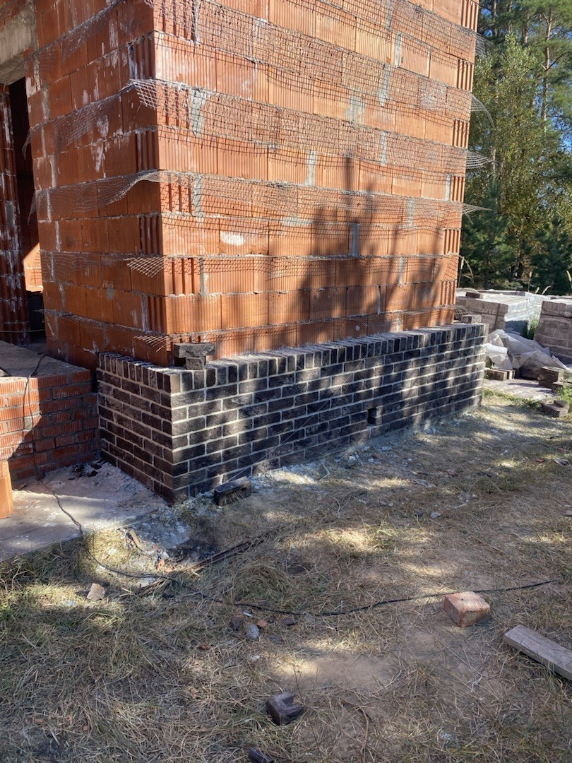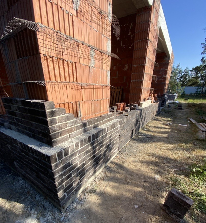 Цоколь выполнен из полнотелого керамического кирпича.