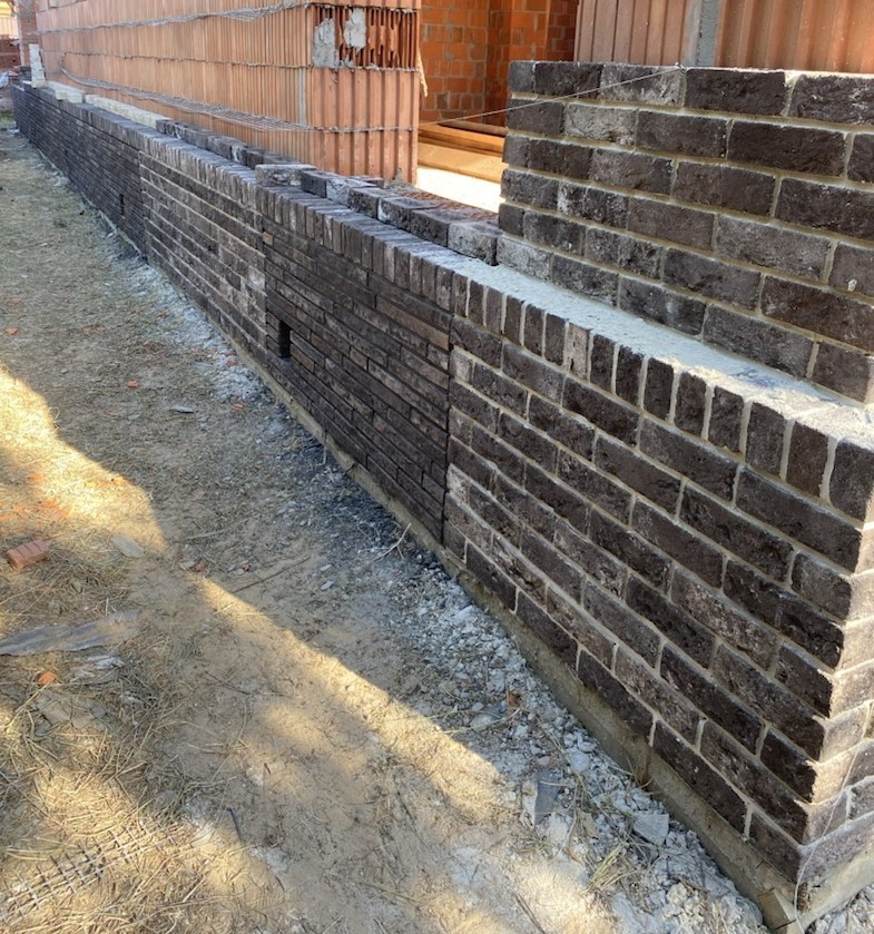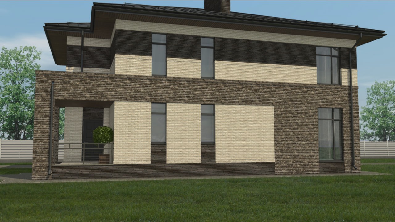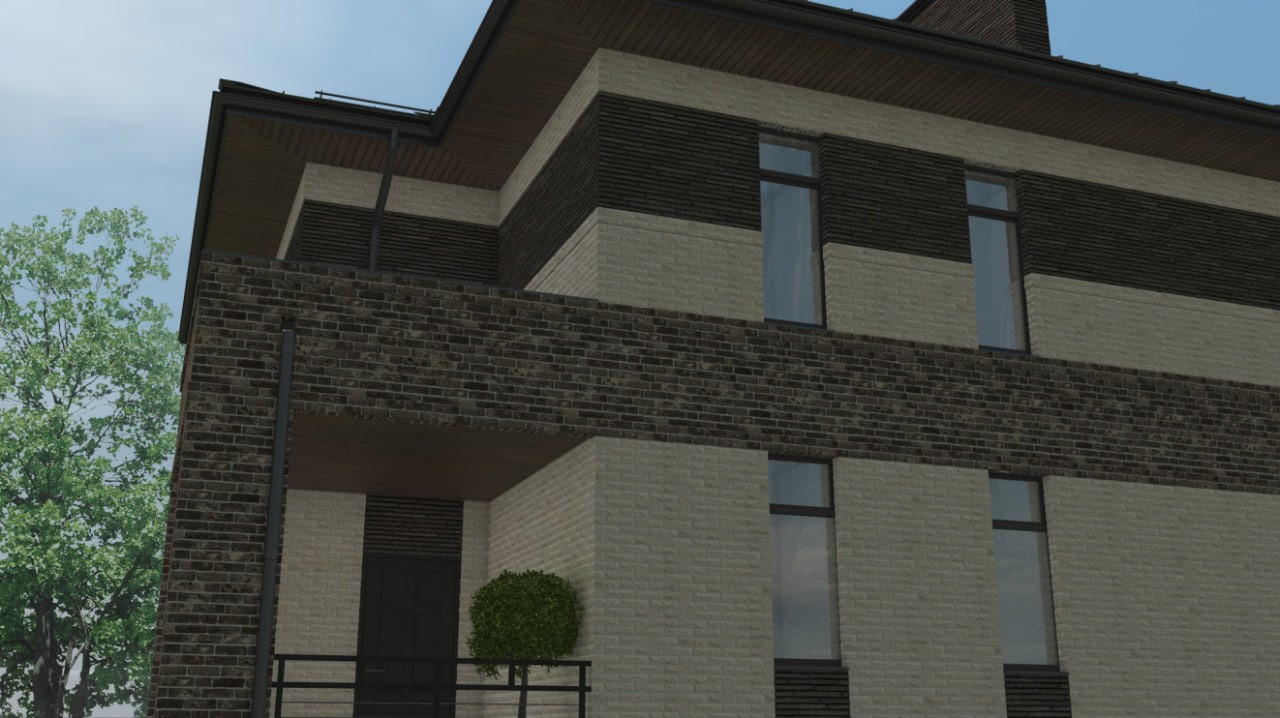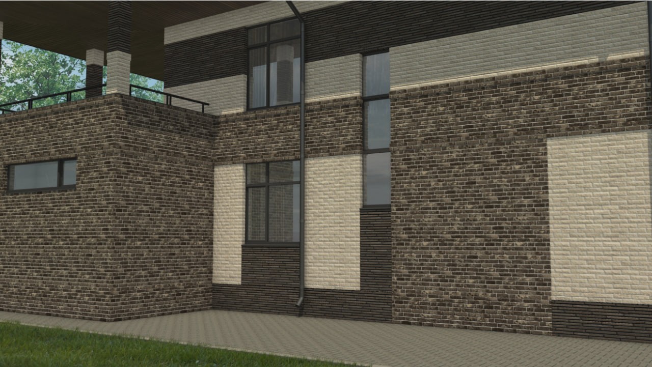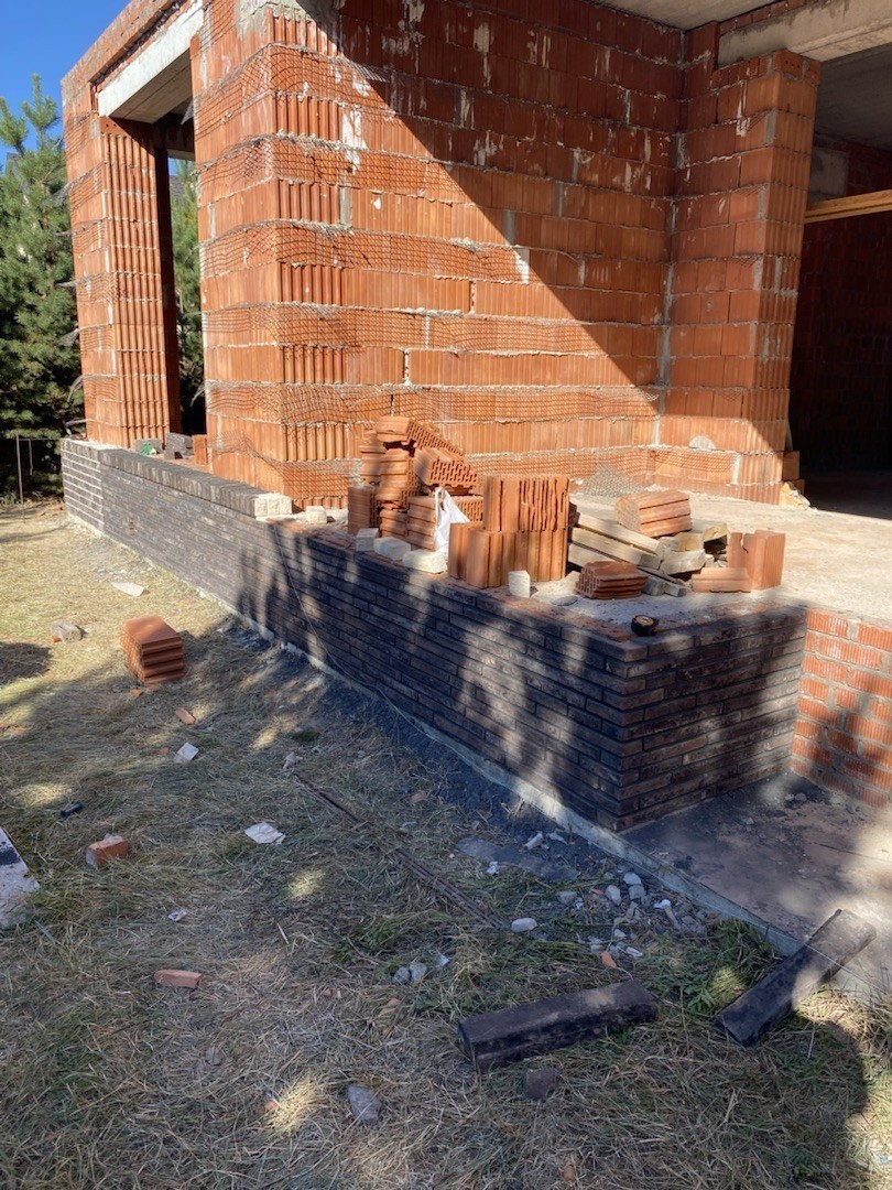 Цоколь выполнен из полнотелого керамического кирпича.