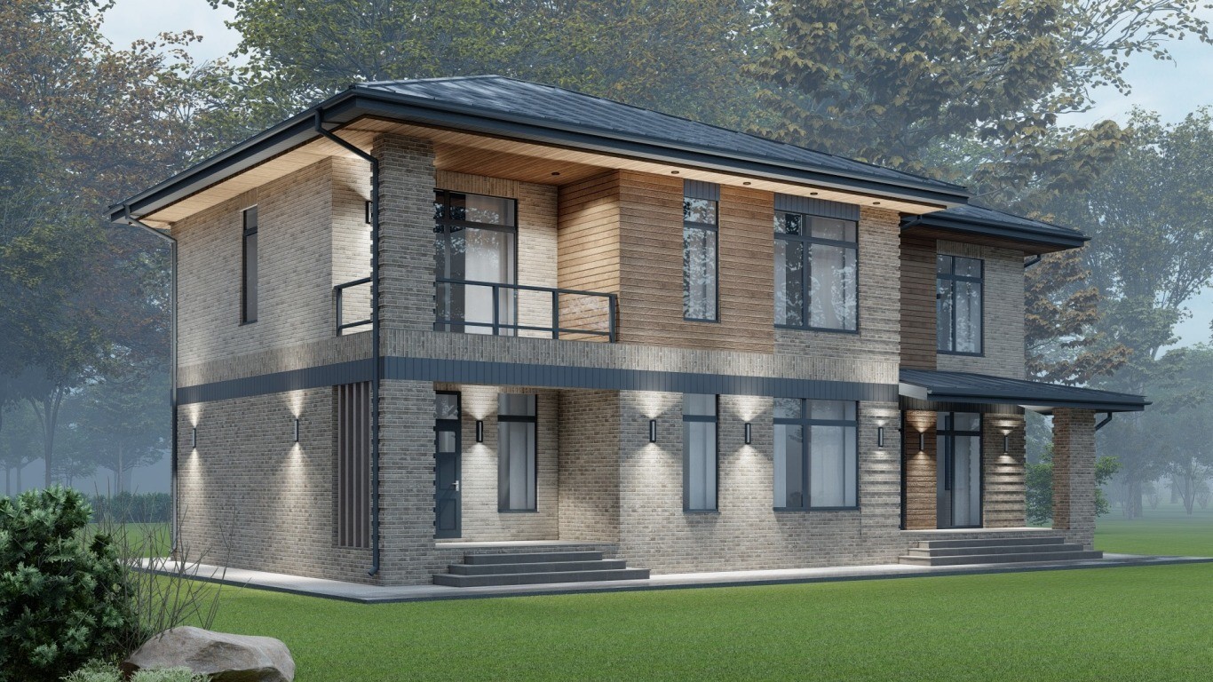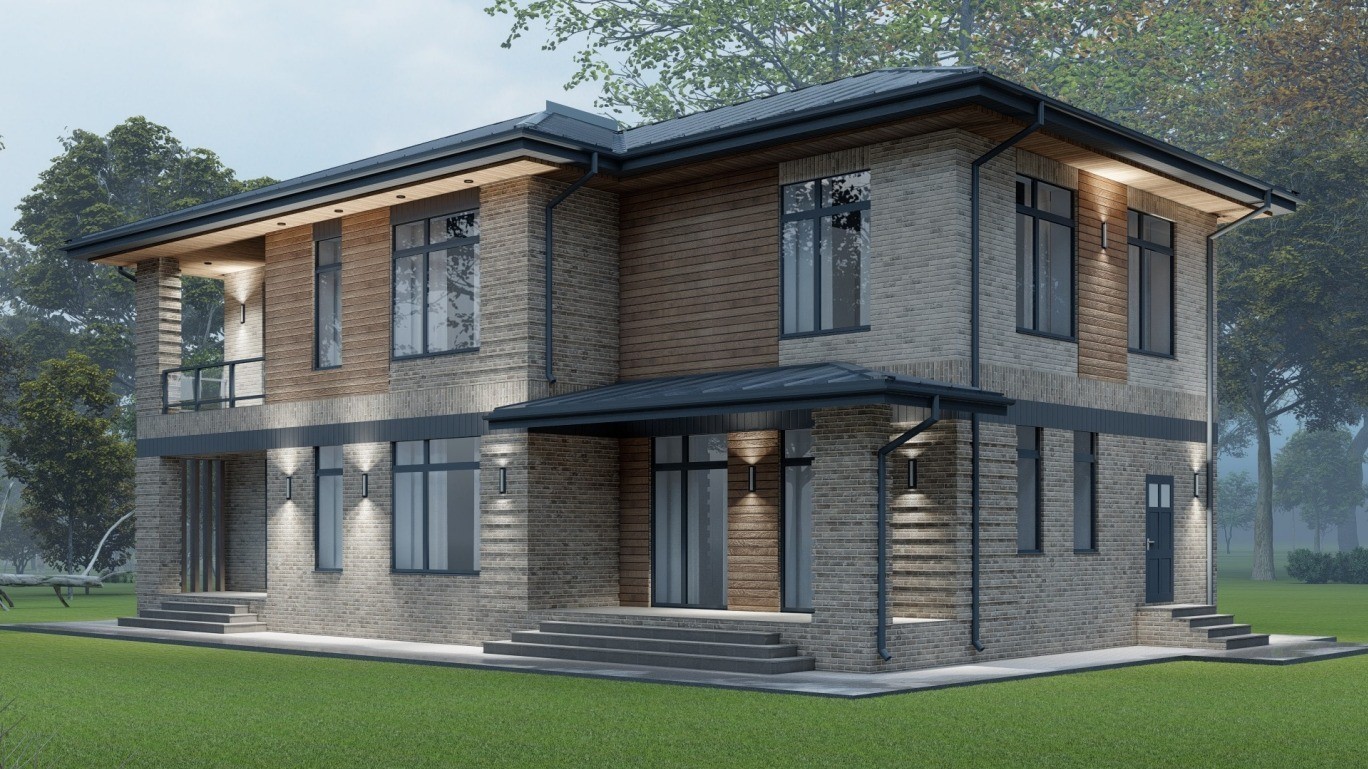 Двухэтажный жилой дом с мансардой