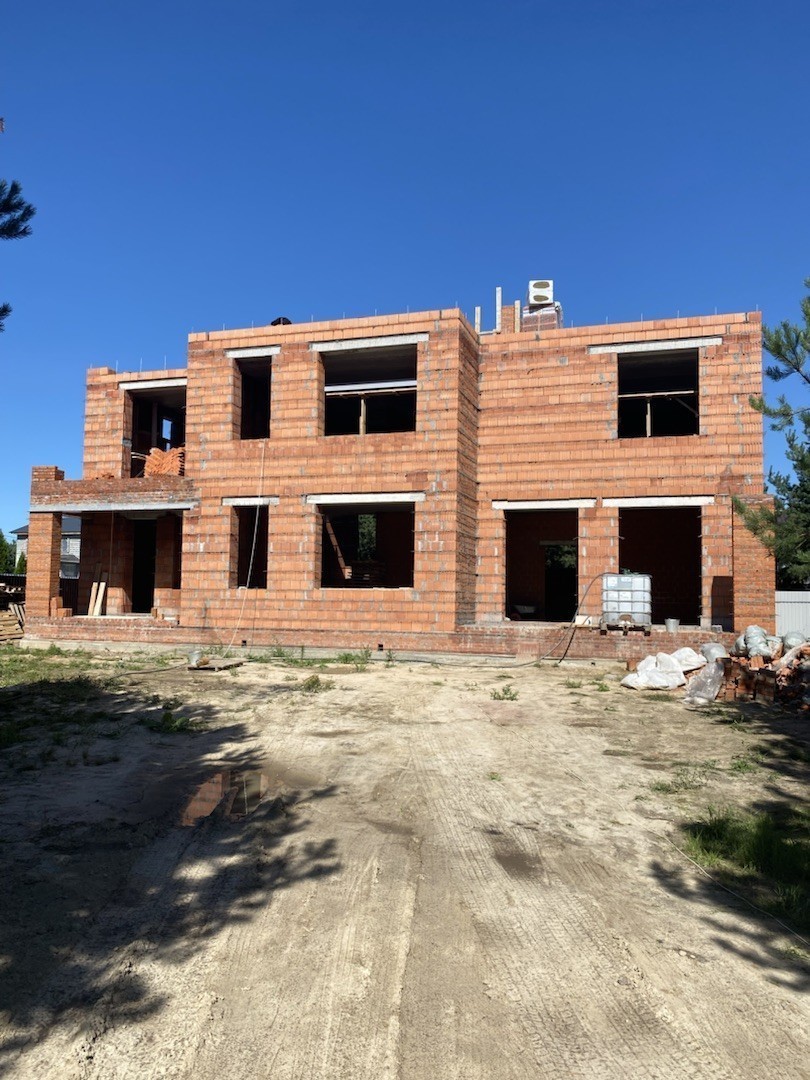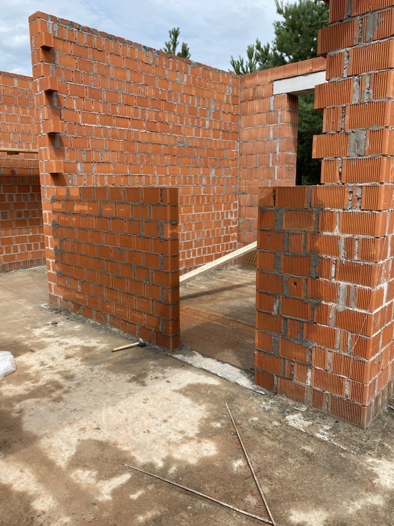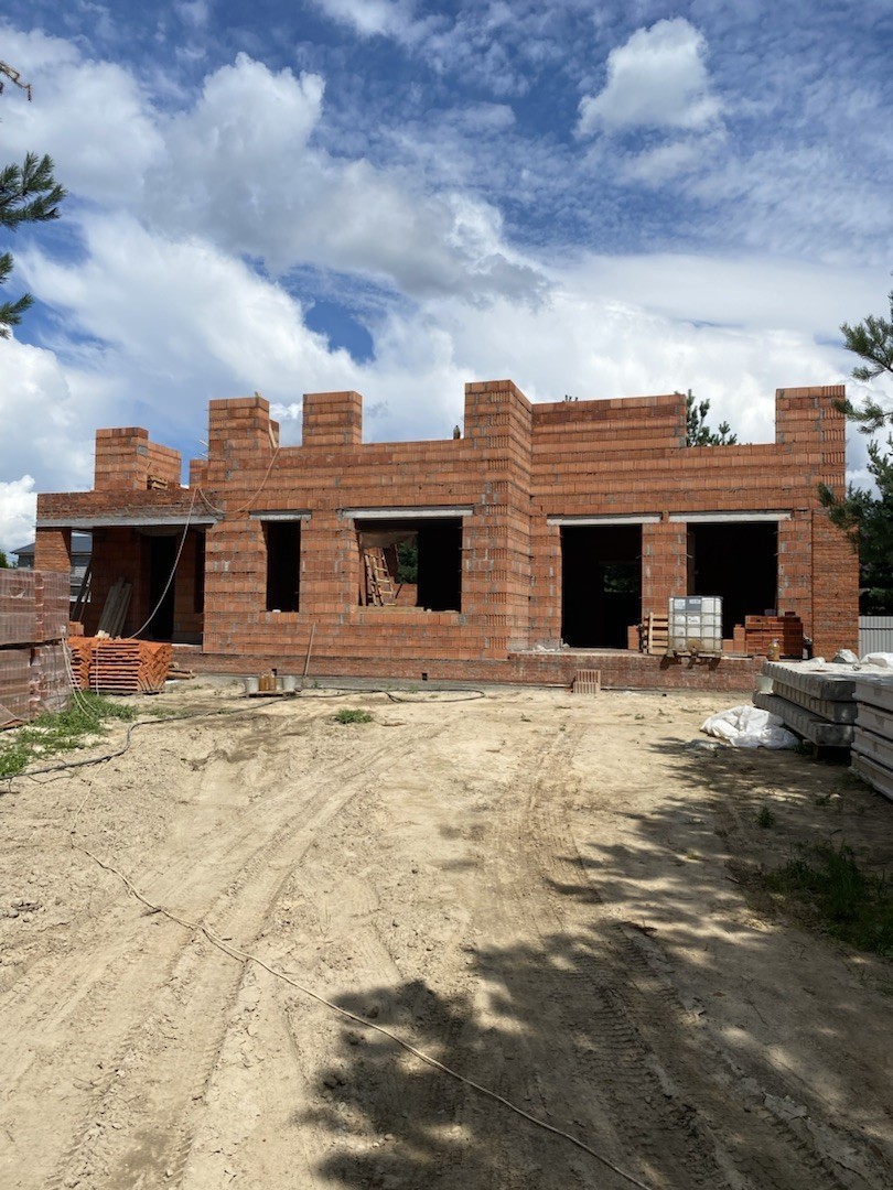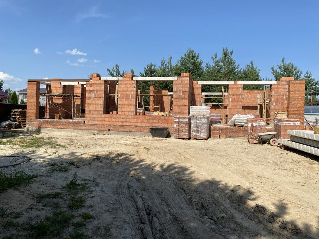 Наружные стены выполнены из керамических блоков 440, с отделкой из керамического кирпича Донские Зори «Серебряно» и «Азарово».