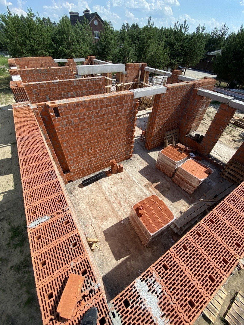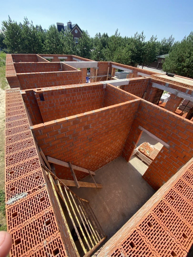 Внутренние стены и перегородки из керамических блоков, а вентканалы – из керамического полнотелого кирпича.