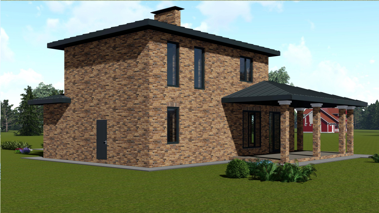 • Общая площадь дома составляет 155,40 м2. Площадь крытой террасы 38,27 м2.