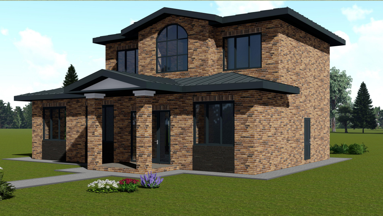 • На втором этаже здания размещены : холл, две спальни, два с/у, гардеробная.