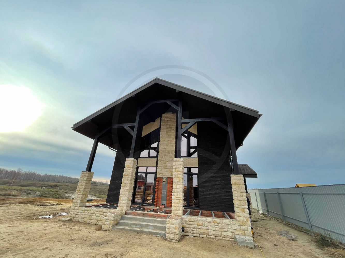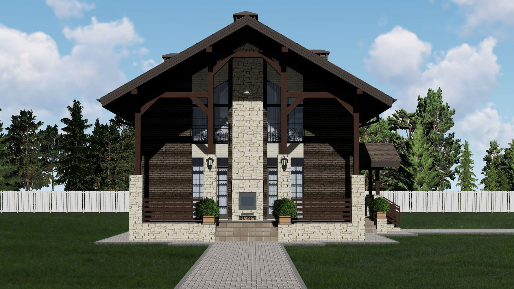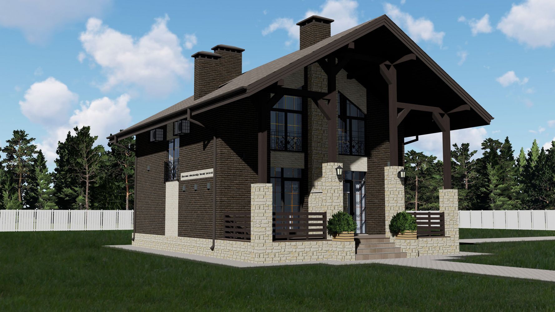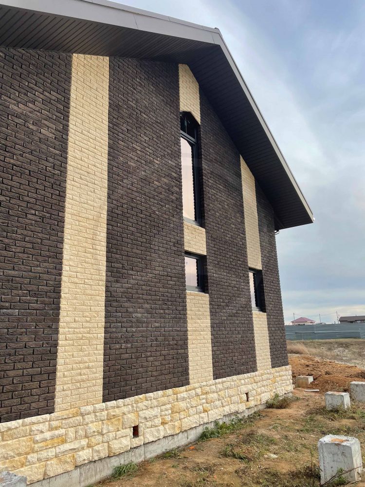 • Цоколь выполнять из керамического полнотелого кирпича марки не менее М150 (размерами 250х120х65мм) с последующей наружной отделкой из искусственного камня White Hills (Данвеган 500-10).