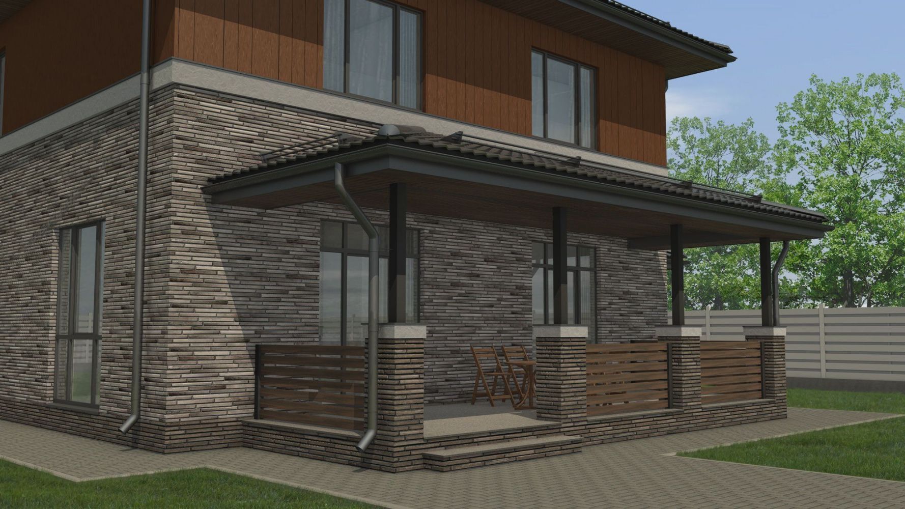 • Цоколь, вент. шахты, колонны (терраса) - Кирпич керамический ригельный Донские Зори LS-046