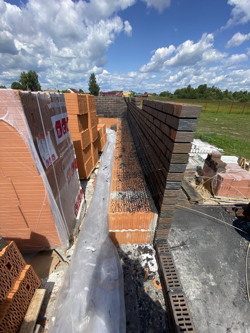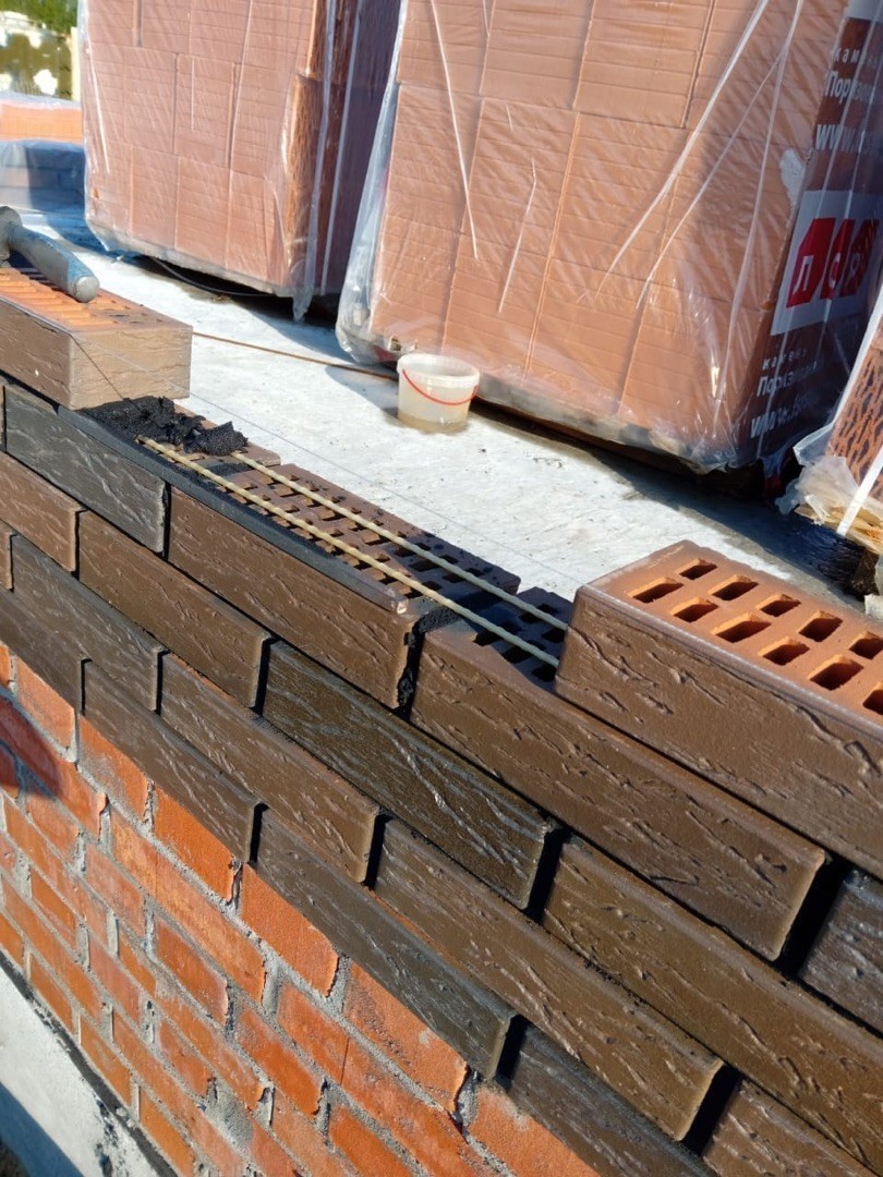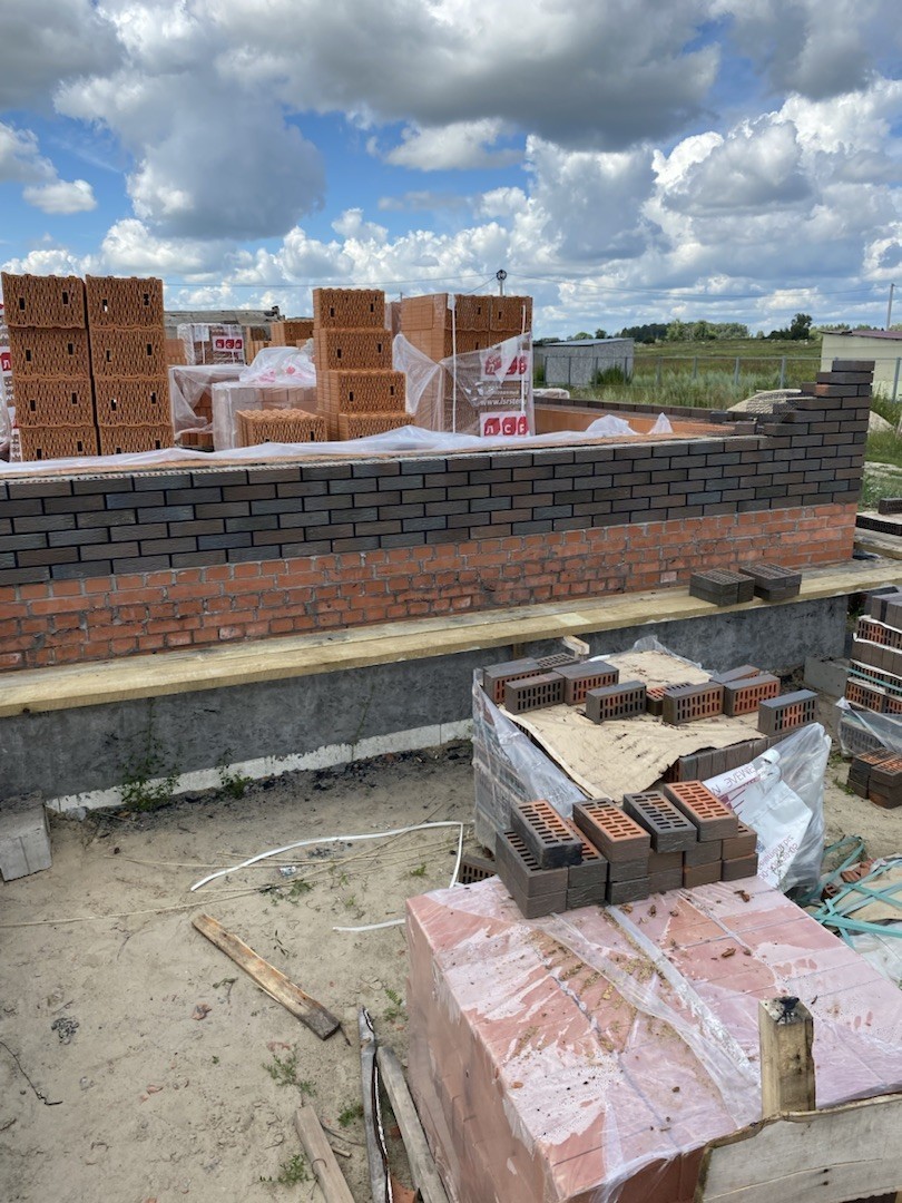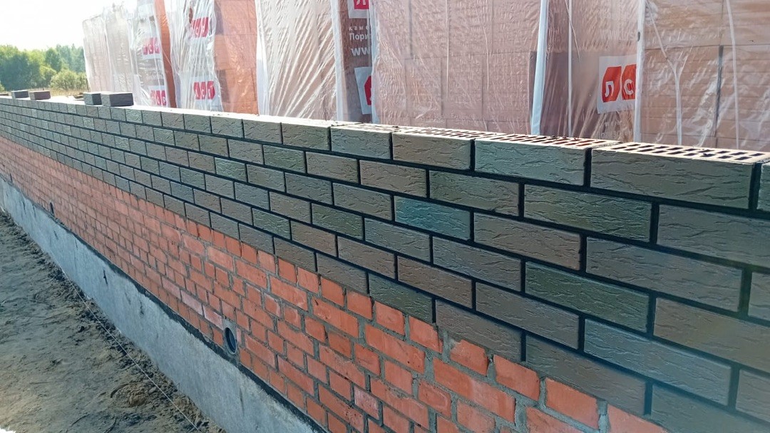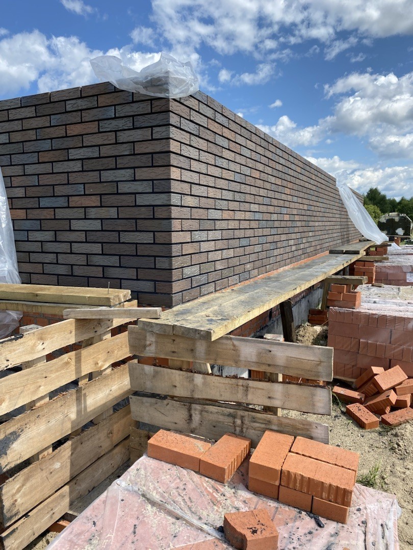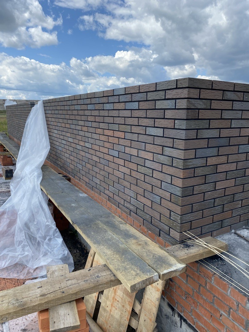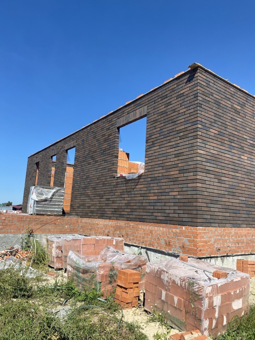 Наружные стены дома – камень керамический 250*219*440 с отделкой керамическим облицовочным кирпичом толщ. 120 мм.